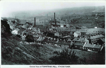 Edmund was born on 1st January 1819 in Newchurch-in-Rossendale - I'm still trying to find out exactly where. He was the first of six children born to James Hamer (1793-1840) and Rachel Turner (1796-1865).The parish records state that when Edmund's father, James, died in 1840 he was living at Tunstead Mill which is in Stacksteads and further down the Rossendale valley than Waterfoot, towards Todmorden. I don't have the date for this photograph of Tunstead Mill but it is later than 1840 and is, therefore, much more built up: