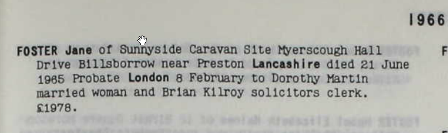 Jane died on 21st June 1965 in Myerscough, Preston and is buried in Rawtenstall cemetry.
