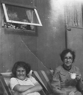 And here is one of Janice Walmsley and Marion Crouch - this shows the billets we lived in, we often sunbathed when we weren't on duty: