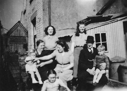 My parents split up when I was born so I don't recall my father at all. I do, however, remember visiting our grandparents in Preston. I remember it being a big house with a garden at the front and a pond with goldfish. Here is a memento of one such visit: my cousin Kathleen is at the front, I am sitting on grandma Foster's knee, aunty Jennie is behind us, my mum is in the middle, then Stephen is sitting on grandad Foster's knee with aunty Dorothy in the background.