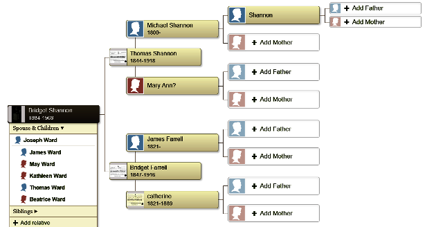 The Shannon line begins with my grandma, Bridget Ward (nee Shannon)