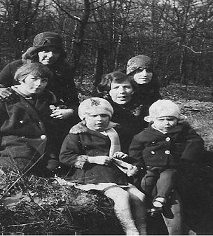 Here mum is when she was five years old; her mum, (my grandma) Bridget, is at the back behind Bessie Richardson who is the daughter of Betsy Alice Richardson in the centre and in front of aunty May, mum's sister. I think I have this right: Betsy Alice is the daughter of my grandma's sister, Mary Ann (known as aunt Polly) who married Michael Harwood. Betsy Alice married John Richardson and Bessie Richardson is one of their children. Mum is at the front in the centre and my cousin Tommy, aunty May's eldest son, is the child sitting on the lap of Betsy Alice.
